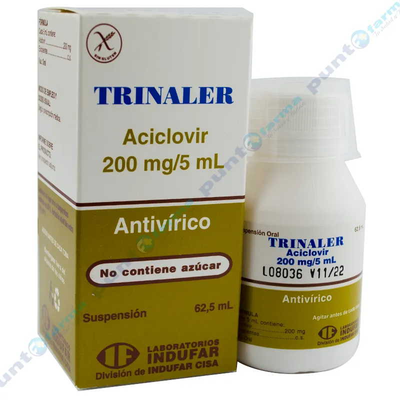 Trinaler - Aciclovir 200 mg/5mL - Suspensión frasco de 62,5 ml