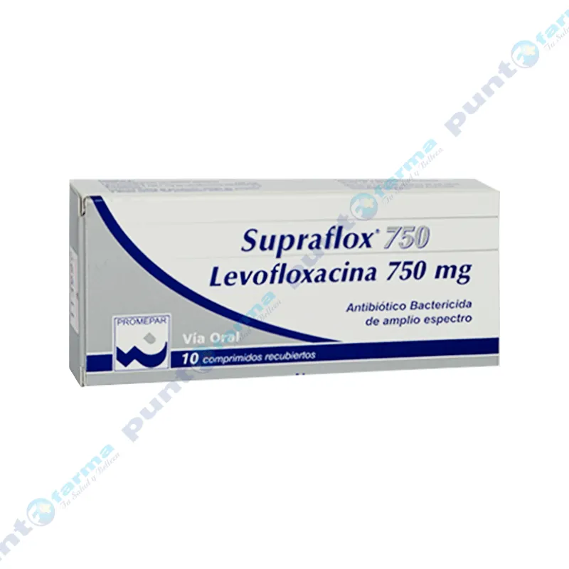 Supraflox Levofloxacina 750mg - Caja de 10 Comprimidos Recubietos.