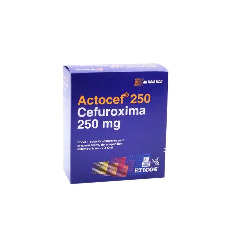 Indicaciones. Tratamiento de infecciones causadas por bacterias sensibles. Posología. La duración del tratamiento, se determina por la severidad de la infección y el estado clínico del paciente. Modo de uso Los comprimidos y la suspensión, deben administrarse por vía oral, preferentemente con los alimentos. Contraindicaciones. Hipersensibilidad a la cefuroxima o a los antibióticos cefalosporínicos en general.