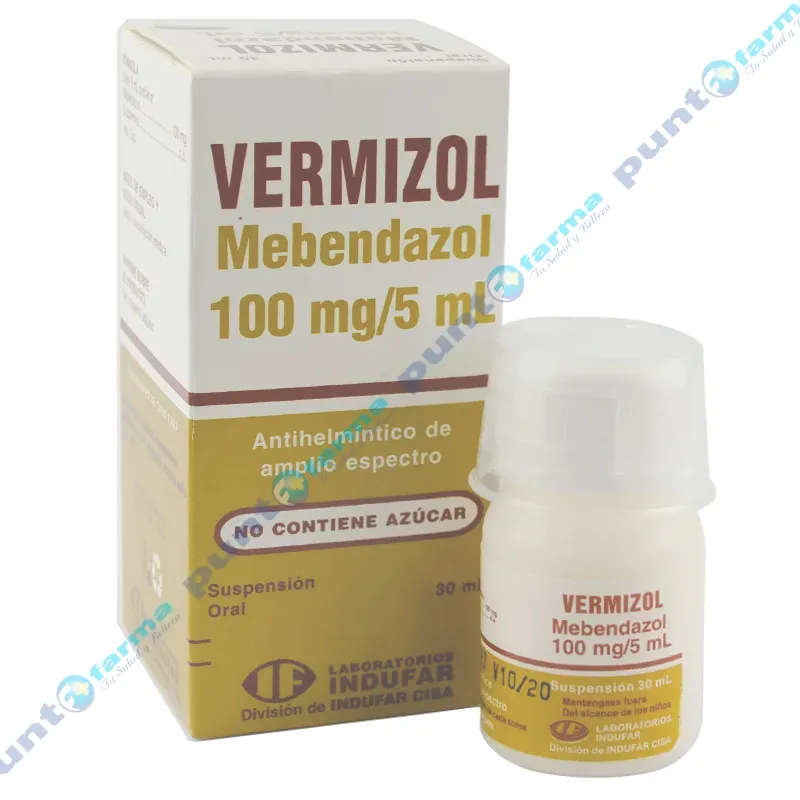 Indicaciones: VERMIZOL Suspensión esta indicado en el tratamiento de Oxiuriasis, Ascaridiasis, Anquilostomiasis, Teniasis, Trichuriasis, Estrongiloidiasis. Reacciones Adversas: Son escasas y de poca incidencia debido a la baja absorción del Mebendazol. Se pueden presentar diarrea, dolor abdominal, náuseas de baja intensidad. Precauciones y Advertencias: Se recomienda concluir con el ciclo completo de tratamiento. Tener precaución al administrar a pacientes diabéticos que reciben insulina o hipoglucemiantes orales ya que se puede potenciar el efecto hipoglucémico debido a que el Mebendazol facilita la liberación de insulina. Interacciones: La Carbamazepina disminuye las concentraciones plasmáticas del Mebendazol. Al administrarse con hipoglucemiantes orales incrementa el efecto hipoglucémico. Sobredosis: Mareos, dolor de cabeza, dolor abdominal, náuseas, diarrea, vómitos. Tratamiento: Debe ser sintomático y de mantenimiento. Restricciones de Uso: Debe evaluarse la relación riesgo-beneficio en los casos de Ileítis de Crohm o colitis ulcerosa ya que puede aumentar la absorción y la toxicidad del Mebendazol. Conservación: Conservar seco a temperatura ambiente de 25ºC. Variación admitida entre 15º y 30ºC.
