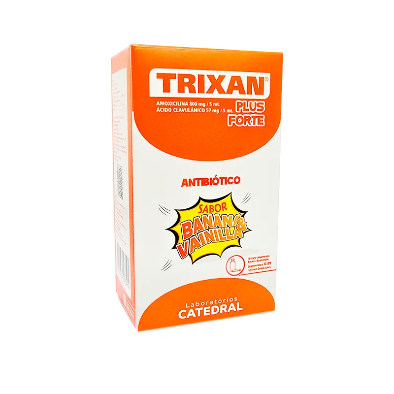 El médico debe indicar la posología y el tiempo de tratamiento apropiado a su caso particular; no obstante, la dosis usual recomendada es: Adultos y niños mayores de 12 años: · 5 a 10 mL de suspensión reconstituida (Amoxicilina 400 mg y Acido Clavulánico 57 mg) cada 12 horas. · infecciones severas, 5 mL de suspensión reconstituida (Amoxicilina 800 mg y Acido Clavulánico 57 mg) cada 12 horas. Población pediátrica: el médico debe calcular la dosis de acuerdo al peso corporal y tipo de enfermedad. En general, de 25 a 75 mg/kg/día, según el tipo de infección (expresados como Amoxicilina), repartidos en 2 tomas, cada 12 horas. Para el Trixan Plus Duo (Amoxicilina 400 mg y Acido Clavulánico 57 mg) con una relación 7:1, la dosis usual recomendada es de 25 a 45 mg de amoxicilina/3,6 a 6,4 mg ácido clavulánico/kg/día, dos veces al día, cada 12 horas. · Niños de 3 meses a 2 años: el médico debe calcular la dosis de acuerdo con el peso corporal. (Ver Tabla). · 25 mg de amoxicilina/3,6 mg ácido clavulánico/kg/día Niños de 2 a 6 años (13-21 kg): 2,5 mL de amoxicilina/ác. clavulánico 400/57 polvo para suspensión oral, dos veces al día. Niños de 7 a 12 años (22-40 kg): 5 mL de amoxicilina/ác. clavulánico 400/57 polvo para suspensión oral, dos veces al día. · 45 mg de amoxicilina/6,4 mg ácido clavulánico/kg/día Niños de 2 a 6 años (13-21 kg): 5 mL de amoxicilina/ác. clavulánico 400/57 polvo para suspensión oral, dos veces al día. Niños de 7 a 12 años (22-40 kg): 10 mL de amoxicilina/ác. clavulánico 400/57 polvo para suspensión oral, dos veces al día. Para TRIXAN® PLUS FORTE (Amoxicilina 800 mg y Acido Clavulánico 57 mg) con una relación 14:1, la dosis usual recomendada es de 90 mg de amoxicilina/6,4 mg ácido clavulánico/kg/día, dos veces al día, cada 12 horas. Niños de 3 meses a 2 años: el médico debe calcular la dosis de acuerdo con el peso corporal. (Ver Tabla). Niños de 2 a 6 años (13-21 kg): 5 mL de amoxicilina/ác. clavulánico 800/57 polvo para suspensión oral, dos veces al día. Niños de 7 a 12 años (22-40 kg): 10 mL de amoxicilina/ác. clavulánico 800/57 polvo para suspensión oral, dos veces al día.