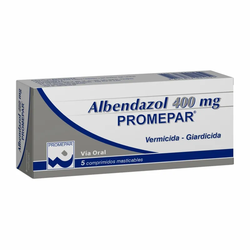 - Ascariasis, tricocefalosis, enterobiasis, uncinariasis: 400 mg, como dosis única.