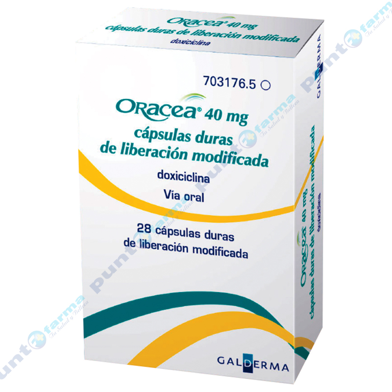 Acción Terapéutica: La doxiciclina ha demostrado inhibir la actividad de los neutrófilos y diversas reacciones proinflamatorias, incluyendo las asociadas con la fosfolipasa A2, el óxido nítrico endógeno y la interleucina-6. Indicaciones: Oracea está indicado para reducir las lesiones papulopustulosas en pacientes adultos con rosácea facial Posología: Adultos, incluidos pacientes de edad avanzada: La dosis diaria es de 40mg (1 capsula).La capsula debe tomarse por la mañana, con una cantidad suficiente de agua para reducir el riesgo de irritación y de ulceración esofágica. Los pacientes deben ser evaluados al cabo de 6 semanas y, si no se observan ningún efecto, debe considerarse la posibilidad de interrumpir el tratamiento. Tras la interrupción del tratamiento, las lesiones tendían a reaparecer después de 4 semanas de seguimiento.Por lo tanto, se recomienda la evaluación de los pacientes 4 semanas después de la interrupción del tratamiento. Contraindicaciones: Hipersensibilidad al principio activo, a otras tetraciclinas o a alguno de los excipientes. Embarazo. Uso simultaneo con retinoides orales. No se debe prescribir doxiciclina a los pacientes que sabe o se cree que tienen aclorhidria, ni a aquellos que se hayan sometido a operaciones de derivación o exclusión del duodeno. Reacciones Adversas: Los siguientes efectos adversos pueden ocurrir con frecuencia (entre 1 y 10 de cada 100 pacientes) durante el tratamiento con ORACEA: - Inflamación de la nariz y la garganta - Sinusitis (inflamación de los senos paranasales) - Infección por hongos - Ansiedad - Dolor de cabeza por sinusitis - Hipertensión o aumento de la presión arterial - Diarrea - Dolor en la parte superior del abdomen - Boca seca - Dolor de espalda - Dolor - Cambios en algún parámetro en el análisis de sangre (cantidad de glucosa en la sangre o análisis de la función hepática). Precauciones y Advertencias: Oracea contiene doxiciclina en una formulación diseñada para inducir niveles plasmáticos inferiores al umbral antimicrobiano. Oracea no debe utilizarse para tratar infecciones provocadas por organismos sensibles (o presuntamente sensibles) a la doxiciclina.Las formas farmacéuticas sólidas de las tetraciclinas pueden provocar irritación y ulceración esofágica. Para evitar la irritación y ulceración esofágica, hay que tomar líquidos adecuados (agua) con este medicamento (Ver Posología y Forma de Administración). Los pacientes deben ingerir Oracea de pie o sentados en posición erguida. Aunque durante los ensayos clínicos de Oracea no se observó proliferación de microorganismos oportunistas, tales como levaduras, el tratamiento con tetraciclinas a dosis más elevadas puede ocasionar un crecimiento excesivo de microorganismos no sensibles, incluidos los hongos. Aunque no se observó en los ensayos clínicos con Oracea, el uso de tetraciclinas a dosis más elevadas puede aumentar la incidencia de candidiasis vaginal. Oracea debe utilizarse con precaución en pacientes con un historial de predisposición a la proliferación de candidiasis. Si se sospecha una sobreinfección, deben adoptarse medidas adecuadas, incluyendo la decisión de interrumpir la administración de Oracea.