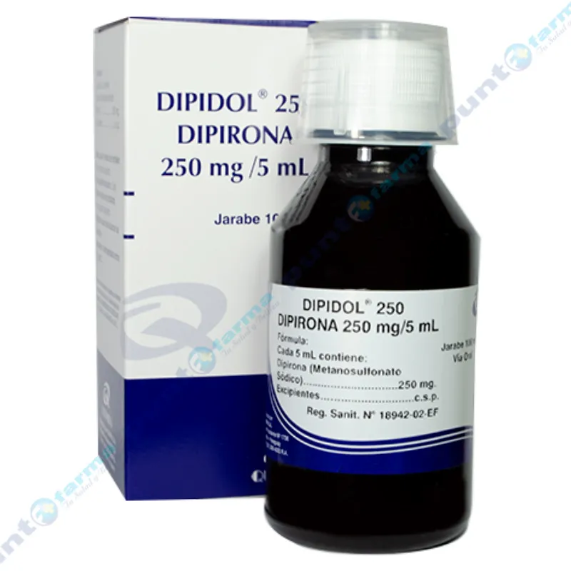 La dosis se establece en función de la intensidad del dolor o la fiebre y la sensibilidad del paciente al tratamiento con la dipirona. Es muy importante escoger la dosis más baja que controle el dolor y la fiebre. El efecto del medicamento suele aparecer entre los 30 y 60 minutos después de la administración oral.Dipidol 250 La siguiente tabla contiene las dosis recomendadas por toma en función a la edad y el peso del paciente. Cada dosis se puede tomar 3 ó 4 veces al día (cada 6-8 horas): Edad: 1-11 meses Peso corporal: 9-10 kg mg de Dipirona: 125-250 mg Dosis: 1,25-2,5 mL Edad: 1-4 años Peso corporal: 11-23 kg mg de Dipirona: 250-375 mg Dosis: 2,5-3,75 mL Edad: 4-12 años Peso corporal: 24-53 kg mg de Dipirona: 250-750 mg Dosis: 2,5-7,5 mL Edad: Adultos y adolescentes (> 53 kg) Peso corporal: — mg de Dipirona: 500-1000 mg Dosis: 10-20 mL