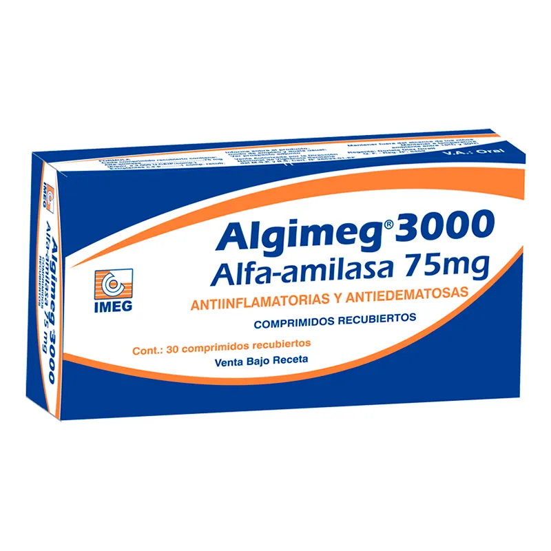 Acción Terapéutica: Enzima amilotilica dotada de propiedades antiinflamatorias y antiedematosaas , que frenan la exemia plasmática y facilita la reabsorción del edema inflamatorio o traumatico. Indicaciones: tratamiento y prevención de los procesos inflamatorios de tipo edematoso de origen: infeccioso, post quirúrgico, post traumatico, indeterminado. Posología: 1 a 2 comprimidos recubiertos cada 8 horas o según prescripción medica. Contraindicaciones: No se conocen, excepto hipersensibilidad al principio activo o a algunos de los excipientes. Reacciones Adversas: Las reacciones adversas que se han notificado en casos muy raros incluyen erupciones en la piel del tipo urticaria Precauciones y Advertencias: Debe ser usado únicamente por prescripción medica y no podrá repetirse sin nueva indicación.