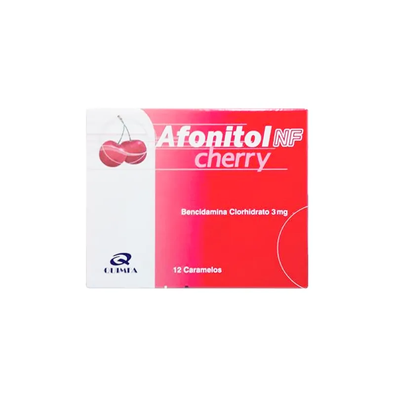 Afonitol NF Cherry Bencidamina - Caja de 12 caramelos