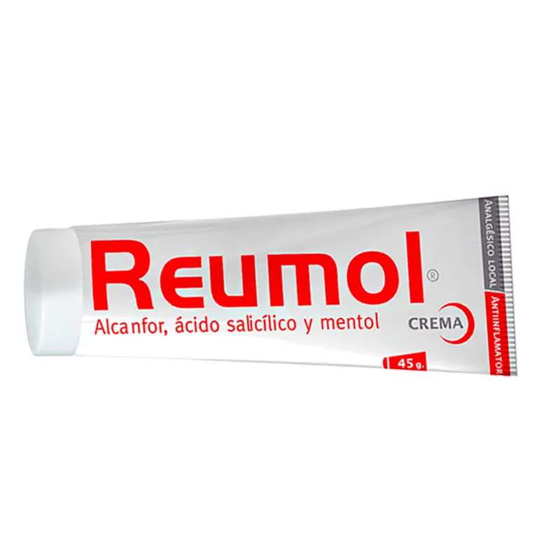 Acción terapéutica: Analgésico local, antiinflamatorio. Indicaciones: Alivio temporario de los dolores menores de origen artrítico, dolor de espalda, torcedura, contusión y esguince Actúa localmente para obtener un alivio temporario de los dolores menores de origen artrítico, dolor de espalda, torcedura, contusión y esguince. Posología: Aplicar sobre el área afectada y masajear suevamente sobre la piel. En caso de persistir el dolor, puede repetir la aplicación hasta 3 veces por día. Contraindicaciones: No debe usarse en niños menores de 12 años. No colocar en la cara. No usar durante el embarazo ni durante la lactancia. Reacciones adversas: Puede observarse enrojecimiento ardor prurito o sensación de calor intenso, que suele disminuir con la interrupción de su aplicación. Precauciones y advertencias: Mantener lejos de los ojos y la boca. No aplicar sobre piel sensible o lastimada. Discontinuar su uso si la piel enrojece o se irrita. Si el dolor persiste o empeora por más de 7 días consulte con su médico. No usar vendajes livianos o almohadilla térmica. Si ud. Está tomando otro medicamento, si está embarazada o dando de amamantar, consulte con su médico antes de utilizar. Reumol: no administrasr a niños menores de 12 años.