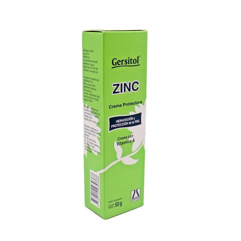 Acción Terapéutica: Forma una capa visible en la zona de aplicación y proporciona un alto nivel de protección. Forma una barrera a líquidos y exudados. Alivia e hidrata la piel afectada. No irrita. De fácil aplicación y retiro, evitando lesiones por fricción. Indicaciones: Hidrata y protege la piel. Posología: Luego de la limpieza quirúrgica aplicar una cantidad abundante de Gersitol ZINC Crema Protectora en el borde de la herida y extender suavemente. En zonas de incontinencia, limpiar y secar la zona afectada y aplicar una cantidad abundante de la crema con cada higiene. Precauciones y Advertencias: Utilizar sobre piel sana.