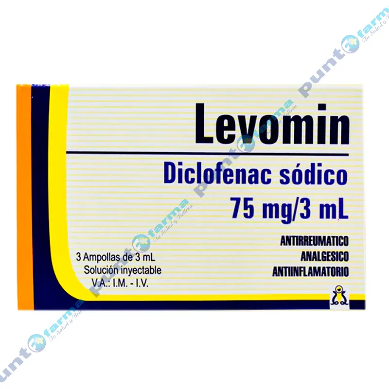 Levomin Diclofenac Sódico 75 mg/3 mL - Caja de 3 ampollas de 3mL