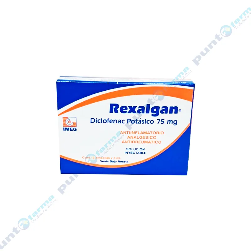 Rexalgan Diclofenac Potásico 75mg - Solución Inyectable 3 ampollas x 3mL