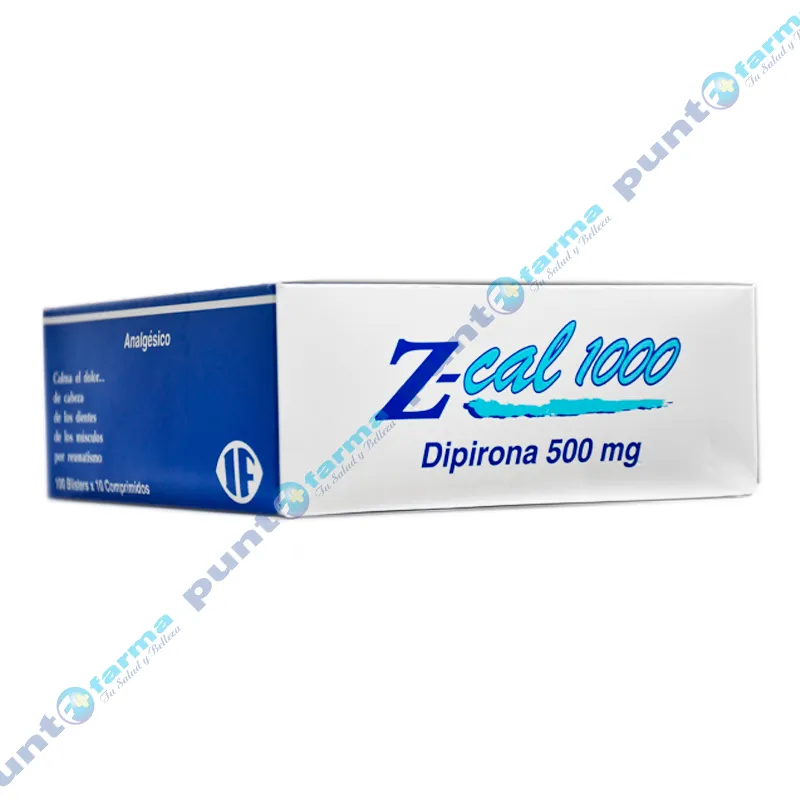 Acción Terapéutica: ZCAL 1000 comprimidos proporciona acción analgésica y antipirética. Indicaciones: Está establecido para el tratamiento sintomático de los cuadros clínicos que cursan con o sin fiebre, cefaleas, jaquecas, odontalgias, neuralgias, neuritis, ciática, lumbalgias, resfríos comunes. Procesos reumáticos, artritis reumatoidea, osteoartritis o artrosis, fibrositis. Dolores espásticos intensos, agudo y crónicos. Posología: La dosis usual recomendada es: Adultos y adolescentes mayores de 15 años: 1-2 comprimidos, 3 a 4 veces por día. En insuficiencia renal o hepática: en pacientes con la función renal y hepática disminuida, como pacientes de edad avanzada y con estado general debilitado, debe evitarse la administración de dosis elevadas. Contraindicaciones: Pacientes con hipersensibilidad conocida a la Dipirona o a otras pirazolonas, así también como a alguno de los excipientes. Deficiencia genética de glucosa. Porfiria hepática intermitente aguda. Broncoespasmo. Alteraciones de la función de la medula ósea o enfermedades del sistema hematopoyético. Insuficiencia hepática o renal grave. Agranulocitosis. Reacciones Adversas: Las reacciones más comunes son la hipersensibilidad. Típicamente las más leves se manifiestan con síntomas cutáneos o de la mucosa. Pueden evolucionar a formas graves con urticaria generalizada, angioedema severo, broncoespasmo severo, arritmias cardíacas, caída de la presión sanguínea. En pacientes con síndrome de asma producida por analgésicos, estas reacciones aparecen típicamente como ataques de asma.Otras reacciones cutáneas y de las mucosas más allá de las mencionadas, ocasionalmente, ocasionalmente pueden presentarse erupciones localizadas producidas por drogas. Raramente puede aparecer rash, así como en casos aislados síndrome de Stevens Johnson o síndrome de lyell. La administración de Dipirona se asocia con mayor riesgo de agranulocitosis.