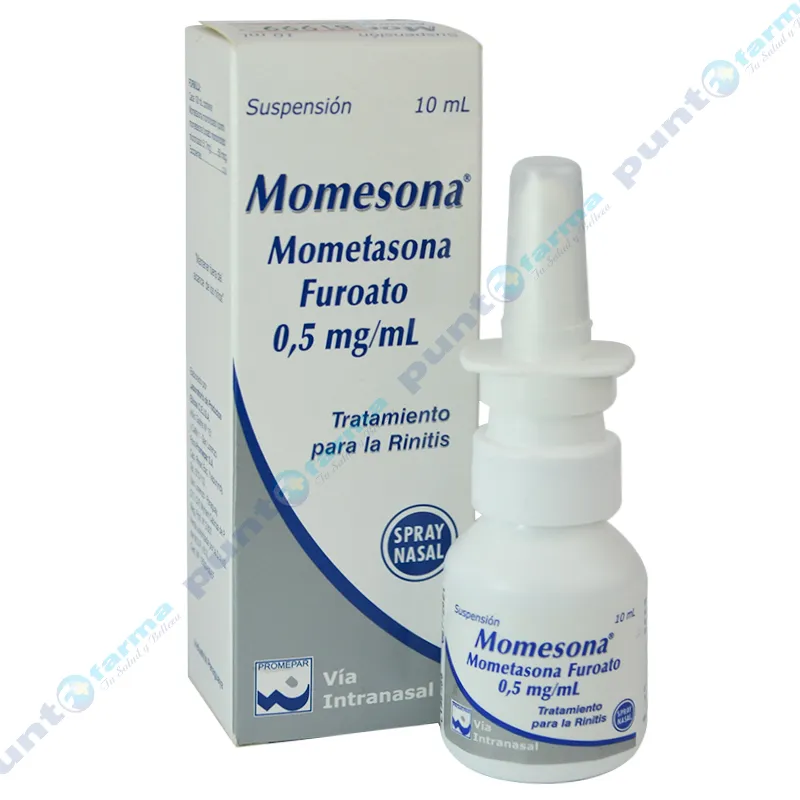 Indicaciones: Tratamiento de los sintomas de la rinitis estacional o perenne en pacientes adultos, adolecentes y niños desde los 2 años de edad. En pacientes con sintomas de rinitis alérgica estacional de moderados a severos, se recomienda el tratamiento profiláctico con durante 2 a semanas antes del comienzo previsto de la estación del polen. Tratamiento coadyuvante en episodios agudos de la sinusitis en niños apartir de 12 años de edad. Tratamiento de los póliposnasales y sintomas asociados que incluyen congestión e hiposmia en pacientes adultos mayores de 18 años. Contraindicaciones: Hipersensibilidad a la mometasona o a cualquieras de los componentes del producto. Infecciones tuberculosas, activas o latentes de las vias respiratorias, infeciones micóticas, bacterianas o virales sistemáticas no tratadas. Herpes simple ocular, embarazo, lactancia, niños menores de 2 años, y cirugia nasal o traumatismo nasal recientes.