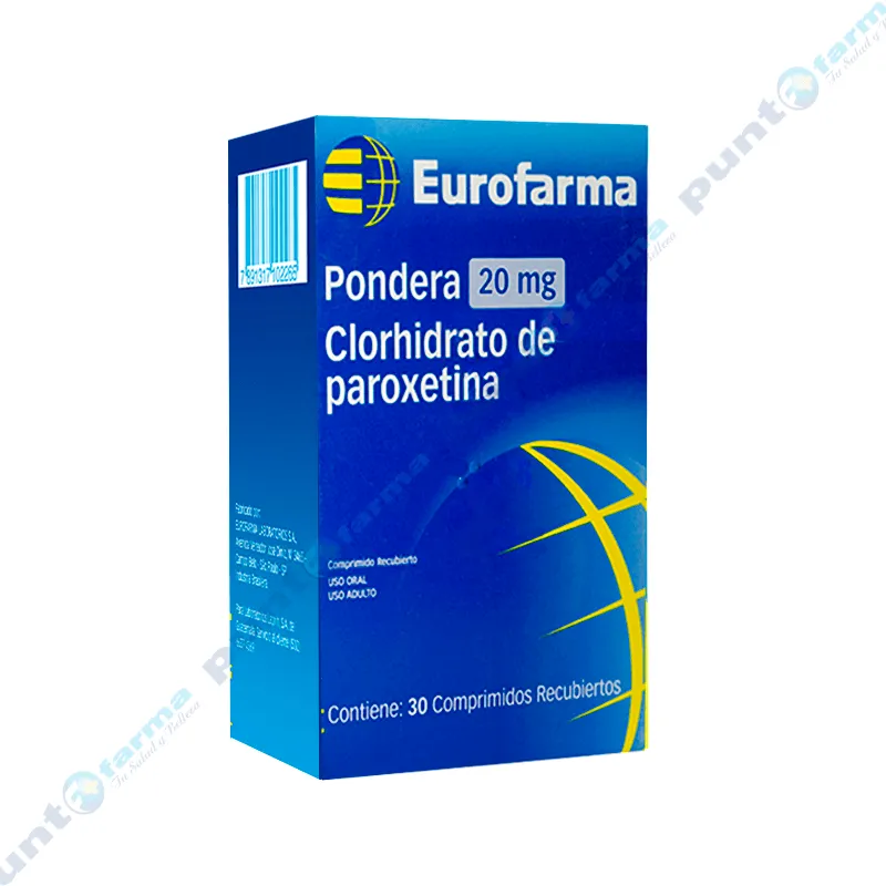 Pondera 20 mg Clorhidrato de Paroxetina - Caja de 30 comprimidos