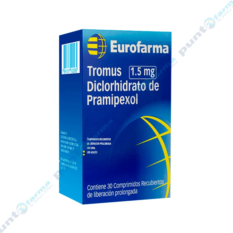 Tromus 1.5 mg Diclorhidrato de Pramipexol - Caja de 30 comprimidos