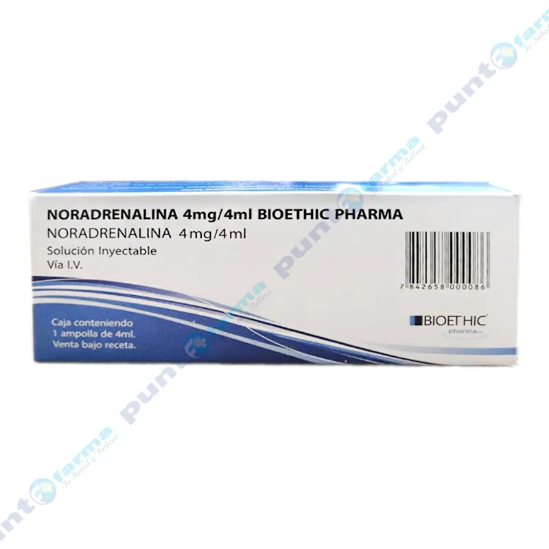 Acción Terapéutica: Simpaticomiméticos Indicaciones: La noradrenalina inyectable es empleada como vasopresor, siendo aceptado su uso en el tratamiento de estados de hipotensión aguda, tales como los que ocasionalmente se dan después de una feocromocitomía, simpatectomía, poliomelitis, anestesia espinal, infarto de miocardio, shock séptico, transfusiones y reacciones a fármacos. La noradrenalina está indicada como coadyuvante temporal en el tratamiento de la parada cardiaca y de la hipotensión aguda. Posología: La noradrenalina debe administrarse por vía intravenosa Dosis usual para adultos: dosis inicial es administrada a una velocidad de 8 a 12 microgramos, Para el mantenimiento, la velocidad se ajusta de 2 a 4 microgramos. En el caso del shock séptico se deben ajustar las dosis alrededor de 0,5 ¿g /kg/min. La infusión de noradrenalina debe reducirse gradualmente, evitando la interrupción brusca. Población pediátrica: Infusión intravenosa, 0,1 ¿g (base) por kg por minuto, ajustando gradualmente la velocidad de administración para conseguir la presión arterial deseada, hasta 1¿g (base) por kg por minuto. Contraindicaciones: Hipersensibilidad al principio activo o a alguno de los excipientes incluidos. No debe usarse la noradrenalina como única terapia en pacientes hipotensos debido a la hipovolemia excepto como medida de emergencia para mantener la perfusión arterial coronaria y cerebral hasta completar la terapia de reposición de la volemia. Se debe evitar su administración en las venas de los miembros inferiores de ancianos y pacientes con enfermedades oclusivas debido a una posible vasoconstricción. Contraindicado durante la anestesia con sustancias que sensibilizan el tejido automático del corazón: halotano, ciclopropano, etc., debido al riesgo de taquicardia ventricular o fibrilación. El mismo tipo de arritmias cardiacas pueden producirse por el uso de noradrenalina inyectable en pacientes con hipoxia profunda o hipercapnia.Debe evitarse su empleo en pacientes que no toleren los sulfitos.No utilizar nunca en pacientes con úlceraso sangrados gastrointestinales ya que la situación de los mismos podría verse agravada. Embarazo: La noradrenalina atraviesa fácilmente la placenta. Puede contraer los vasos sanguíneos del útero y reducir el flujo sanguíneo uterino, produciendo anoxia o hipoxia fetal. No se han llevado a cabo estudios de toxicidad en reproducción en animales. Por tanto, se debe evitar su empleo durante el embarazo y administrarse únicamente si se considera claramente necesario. Lactancia: Se desconoce si se excreta en la leche materna. Se tendrá en cuenta este hecho cuando se administre a madres lactantes. Efectos sobre la capacidad para conducir y utilizar máquinas. No se conocen efectos de Noradrenalina Inyectable sobre la capacidad para conducir y utilizar máquinas.