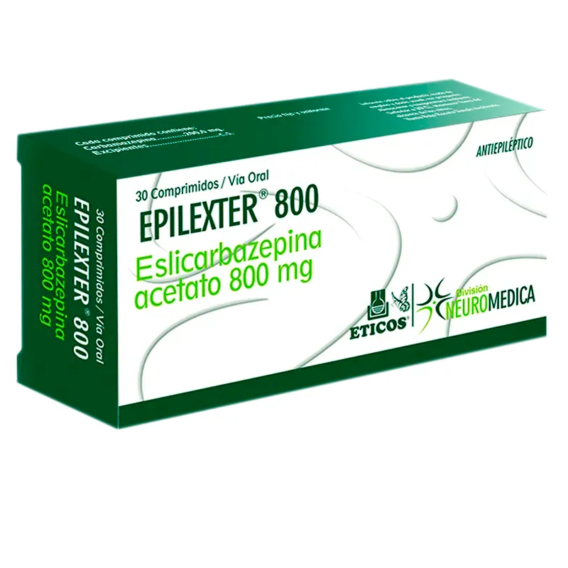 Descripcion del producto: Está indicado como Monoterapia para el tratamiento de crisis de inicio parcial,con o sin generalización secundaria, en adultos con epilepsia recién diagnosticada. - Terapia adyuvante en pacientes adultos, adolescentes y niños mayores de 6 años, con crisis de inicio parcial, con o sin generalización secundaria. Posología: Eslicarbazepina se puede tomar en monoterapia o añadirse al tratamiento anticonvulsivo existente. Dosis habitual: *Adultos: La dosis inicial recomendada es de 400 mg una vez al día, y se aumenta a 800 mg una vez al día después de una o dos semanas de tratamiento, de acuerdo con la tolerancia individual. En función de la respuesta, la dosis puede incrementarse a 1200 mg una vez al día. En los estudios de monoterapia, ha sido utilizado en dosis de hasta 1600 mg/día. *Población pediátrica: -Niños mayores de 6 años: La dosis inicial recomendada es de 10 mg/kg/día, una vez al día. La dosis se debe aumentar en 10 mg/kg/día a intervalos de una o dos semanas hasta 30 mg/kg/día, de acuerdo con la respuesta individual. La dosis máxima es 1200 mg una vez al día. -Niños con un peso corporal > 60 kg: Los niños con un peso corporal de 60 kg o más reciben la misma dosis que los adultos. Contraindicaciones: Hipersensibilidad al principio activo, a otros derivados de la carboxamida (por ejemplo, carbamazepina, oxcarbazepina), o a alguno de los excipientes. Bloqueo auriculoventricular (AV) de segundo o tercer grado. Niños menores de 6 años. Reacciones Adversas: Ideación suicida: Se han informado conductas e ideación suicidas en pacientes tratados con principios activos antiepilépticos en diversas indicaciones. se ha asociado con ciertas reacciones adversas del sistema nervioso central (SNC), tales como mareo y somnolencia. Reacciones cutáneas: erupciones. Hiponatremia.