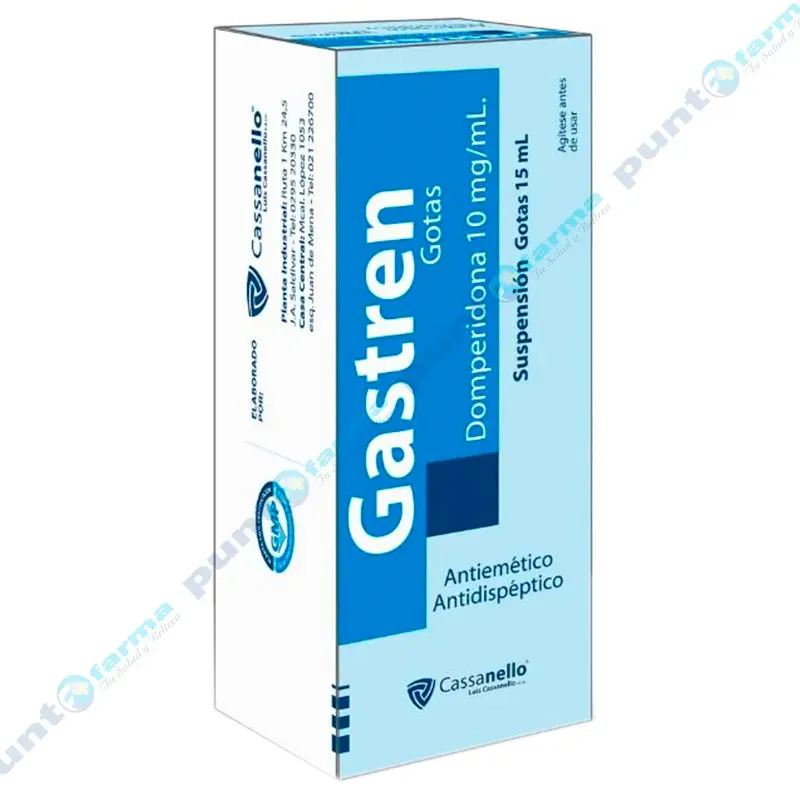 Antidispepsico, Antiemético. Domperidona 10 mg. / mL Beneficios del Producto: Tratamiento sintomático de náuseas y vómitos en los siguientes casos: re¿ujo gastroesofágico después de las comidas. Dispepsias por di¿cultad del vaciamiento gástrico, vómitos en estados infecciosos, estudios radiológicos o endoscópicos, afecciones hepato- digestivas. Posología: Adultos y niños mayores de 12 años: 40 a 60 gotas, 3 veces al día Antes de cada comida y antes de acostarse. Contraindicaciones: Hipersensibilidad a la domperidona y/o cualquiera de los excipientes. No utilizar en pacientes con cardiopatías en general. No usar en caso de hemorragia gastrointestinal, obstrucción intestinal y en pacientes que hayan presentado temblores de los miembros después de alguna medicación (disquinesia tardía).