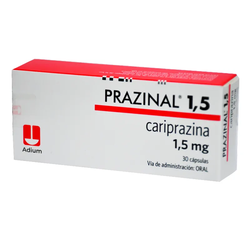 Usos Terapéuticos: La cariprazina, el componente activo de Prazinal, está indicada para el tratamiento de varias condiciones de salud mental en adultos, entre ellas: Esquizofrenia: Ayuda a manejar los síntomas de esta condición que afecta la manera de pensar, sentir y comportarse. Trastorno Bipolar I: Se utiliza para el tratamiento de: Episodios maníacos o mixtos agudos. Episodios depresivos (depresión bipolar). Trastorno Depresivo Mayor (TDM): Puede ser usado como terapia complementaria junto con otros medicamentos antidepresivos. Mecanismo de Acción: La cariprazina actúa modificando la actividad de ciertas sustancias químicas naturales en el cerebro, principalmente la dopamina y la serotonina. Funciona como un agonista parcial de los receptores de dopamina D2 y D3 y de los receptores de serotonina 5-HT1A, lo que ayuda a estabilizar el estado de ánimo, los pensamientos y el comportamiento.