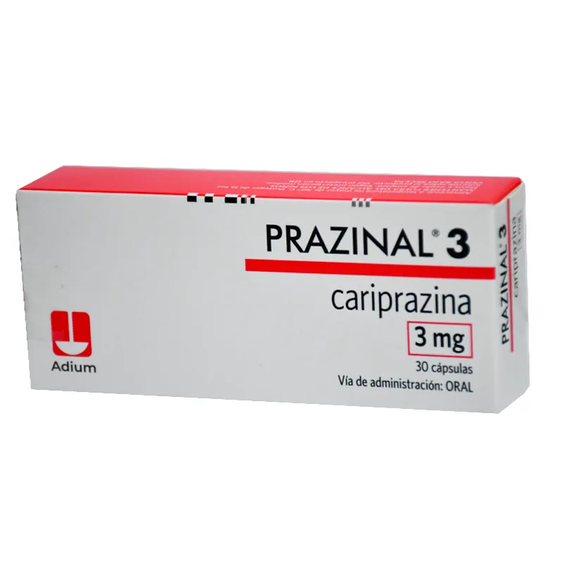 Usos Terapéuticos: La cariprazina, el componente activo de Prazinal, está indicada para el tratamiento de varias condiciones de salud mental en adultos, entre ellas: Esquizofrenia: Ayuda a manejar los síntomas de esta condición que afecta la manera de pensar, sentir y comportarse. Trastorno Bipolar I: Se utiliza para el tratamiento de: Episodios maníacos o mixtos agudos. Episodios depresivos (depresión bipolar). Trastorno Depresivo Mayor (TDM): Puede ser usado como terapia complementaria junto con otros medicamentos antidepresivos. Mecanismo de Acción: La cariprazina actúa modificando la actividad de ciertas sustancias químicas naturales en el cerebro, principalmente la dopamina y la serotonina. Funciona como un agonista parcial de los receptores de dopamina D2 y D3 y de los receptores de serotonina 5-HT1A, lo que ayuda a estabilizar el estado de ánimo, los pensamientos y el comportamiento.