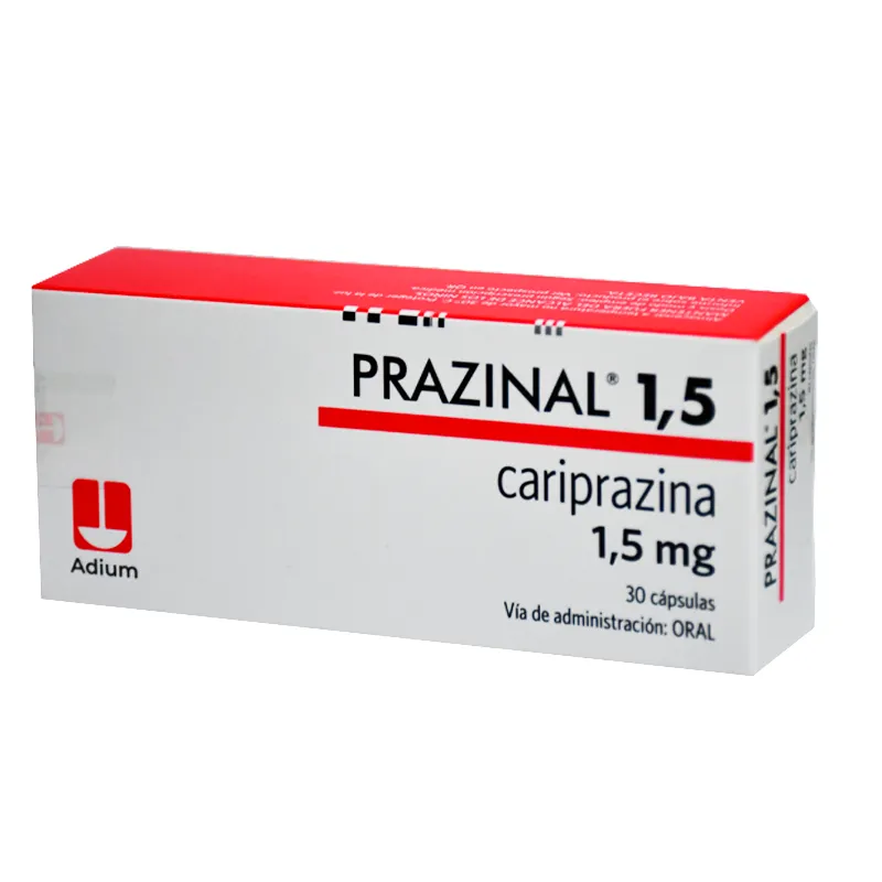 Usos Terapéuticos: La cariprazina, el componente activo de Prazinal, está indicada para el tratamiento de varias condiciones de salud mental en adultos, entre ellas: Esquizofrenia: Ayuda a manejar los síntomas de esta condición que afecta la manera de pensar, sentir y comportarse. Trastorno Bipolar I: Se utiliza para el tratamiento de: Episodios maníacos o mixtos agudos. Episodios depresivos (depresión bipolar). Trastorno Depresivo Mayor (TDM): Puede ser usado como terapia complementaria junto con otros medicamentos antidepresivos. Mecanismo de Acción: La cariprazina actúa modificando la actividad de ciertas sustancias químicas naturales en el cerebro, principalmente la dopamina y la serotonina. Funciona como un agonista parcial de los receptores de dopamina D2 y D3 y de los receptores de serotonina 5-HT1A, lo que ayuda a estabilizar el estado de ánimo, los pensamientos y el comportamiento.