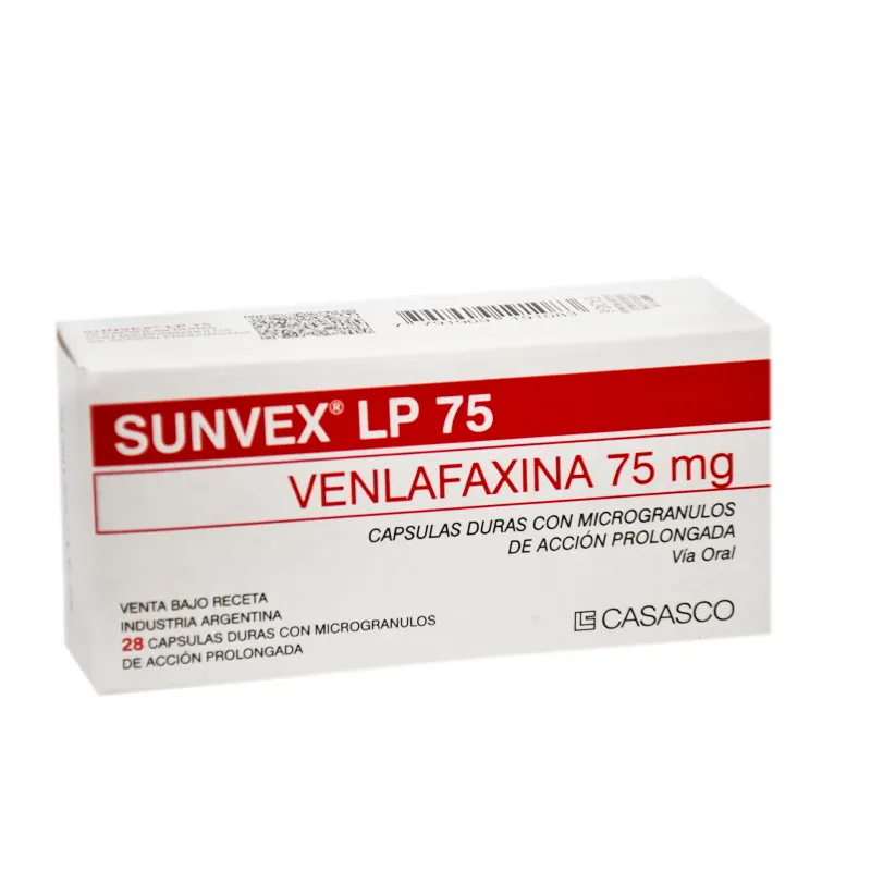 Descripción del Producto: Antidepresivo dual de liberación prolongada. Beneficios del Producto: Respuesta terapéutica superior y mayor tasa de remisión que los ISRS. Eficacia comparable a los tricíclicos, con mayor tolerabilidad. Mayor eficacia en depresión resistente. Efectiva prevención en recaídas. Mejora la calidad de vida y reduce la discapacidad en los pacientes con trastorno de pánico. Modo de Uso: Sunvex LP debe suministrarse en una sola toma diaria, con el desayuno o la cena, aproximadamente a la misma hora todos los días. Las cápsulas deben ingerirse enteras, con líquido suficiente, y no deben ser partidas, masticadas ni disueltas en la boca o en agua. Dosis inicial recomendada: 75mg por día. En caso de no obtenerse respuesta, se puede incrementar la dosis hasta 225mg por día. Los incrementos de dosis se efectuarán a razón de 75mg por día, a intervalos no menores de 4 días.
