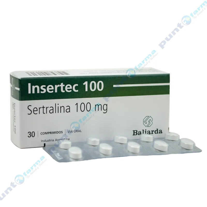Insertec 100 Sertralina 100 mg - Cont. 30 Comprimidos.